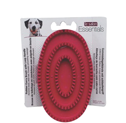 Le Salon Essential Rubber Curry Brush with Loop Handle, Red. Excellent for removing loose, shedding hair. At bath time, it is also handy for sudsing and cleaning. Recommended for short and/or smooth coated breeds. This brush should not be used on matted or tangled fur.